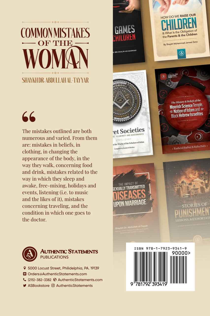 The mistakes outlined are both numerous and varied. Among them are mistakes in beliefs, in clothing, in changing the appearance of the body, in the way they walk, concerning food and drink, mistakes related to the way in which they sleep and awake, free-mixing, holidays and events, listening (i.e. to music and the likes of it), mistakes concerning traveling, and the condition in which one goes to the doctor.