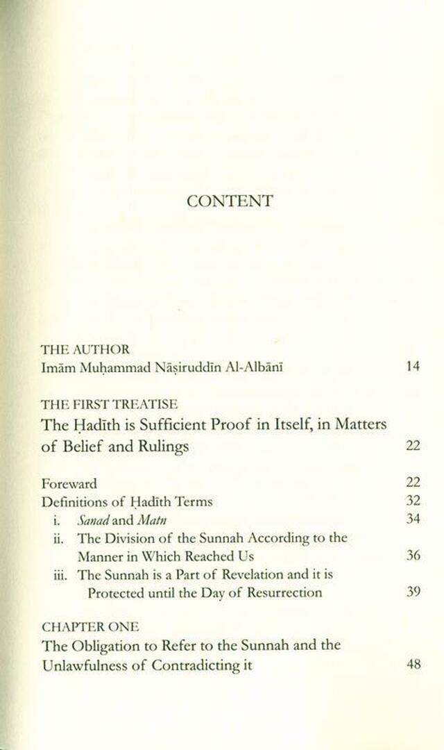 The text before you is a compilation of three works of the learned scholar, Imam al-Albani (rahmatullahi alaihi). The first section of the book discusses Ahadith and its importance in Islam. The second treatise answers questions related to the Noble Qur’an and its relationship to the Sunnah, that were posed to the Sheikh and later transcribed into text form. The final text covers the status of the Sunnah and its necessity in order to fully understand the Qur’an and other related issues.