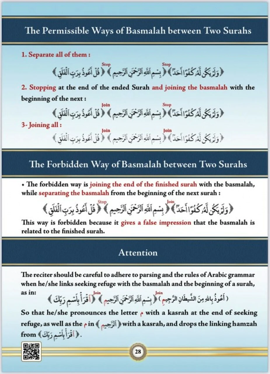 The author has included in this exceptional work the most correct material and detailed definitions relating to the science of tajweed, utilizing vivid illustrative pictures of the organs of speech and what relates to them, and using colours to clarify some tajweed concepts and distinguish them from each other. He has also attached some QR codes to clarify some phonic facts.
