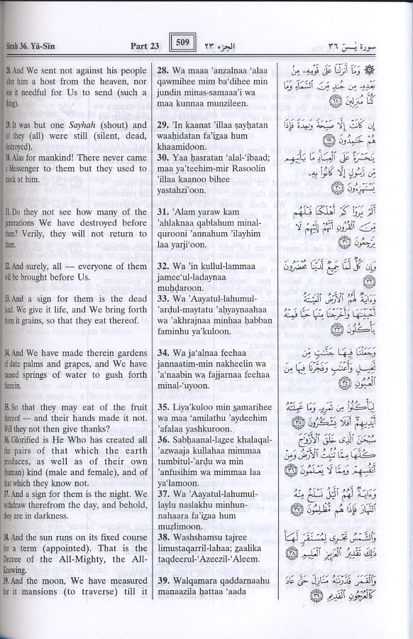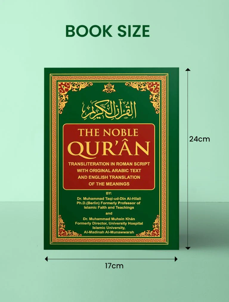 Arabic text of the Qur’anic Verses in their correct form is of prime importance to every Muslim, as the meanings of the Arabic words are changed with little changes of the diacritics. So, to help those readers and reciters who are not too familiar with the Arabic language or cannot read Arabic, Darussalam has prepared this edition of the Noble Qur’an inserting the transliteration of the Noble verses along with their translation. It is hoped that this presentation will be of great help and benefit in this regard.