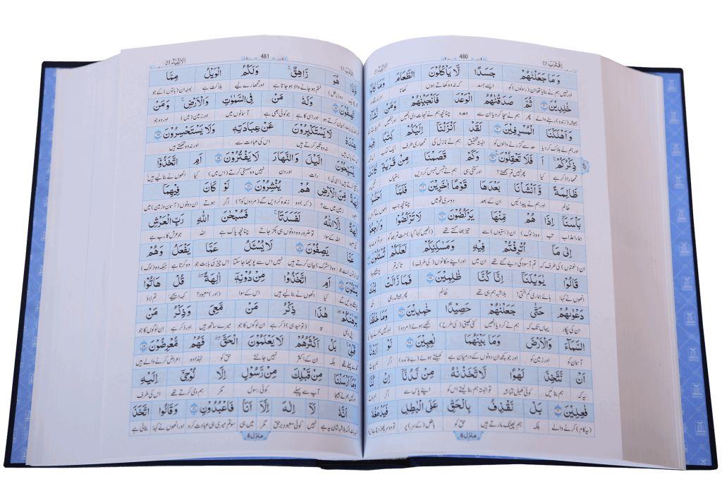New and unique way of learning the word-to-word authentic Urdu translation of the Noble Qur’an. Each Arabic word is boxed with the Urdu meaning below it. New and unique way of learning the word-to-word authentic Urdu translation of the Noble Qur’an. Each Arabic word is boxed with the Urdu meaning below it. The Arabic line has a light blue background and the Urdu has a white background to make it easier to read. It is printed on very good paper with 2 colour printing.