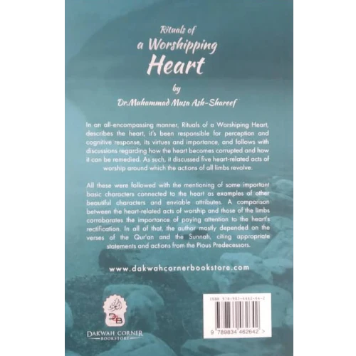 In an all-encompassing manner, Rituals of a Worshiping Heart describes the heart, it’s been responsible for perception and cognitive response, its virtues, and importance, and follows with discussions regarding how the heart becomes corrupted and how it can be remedied. As such, it discussed five heart-related acts of worship around which the actions of all limbs revolve.
