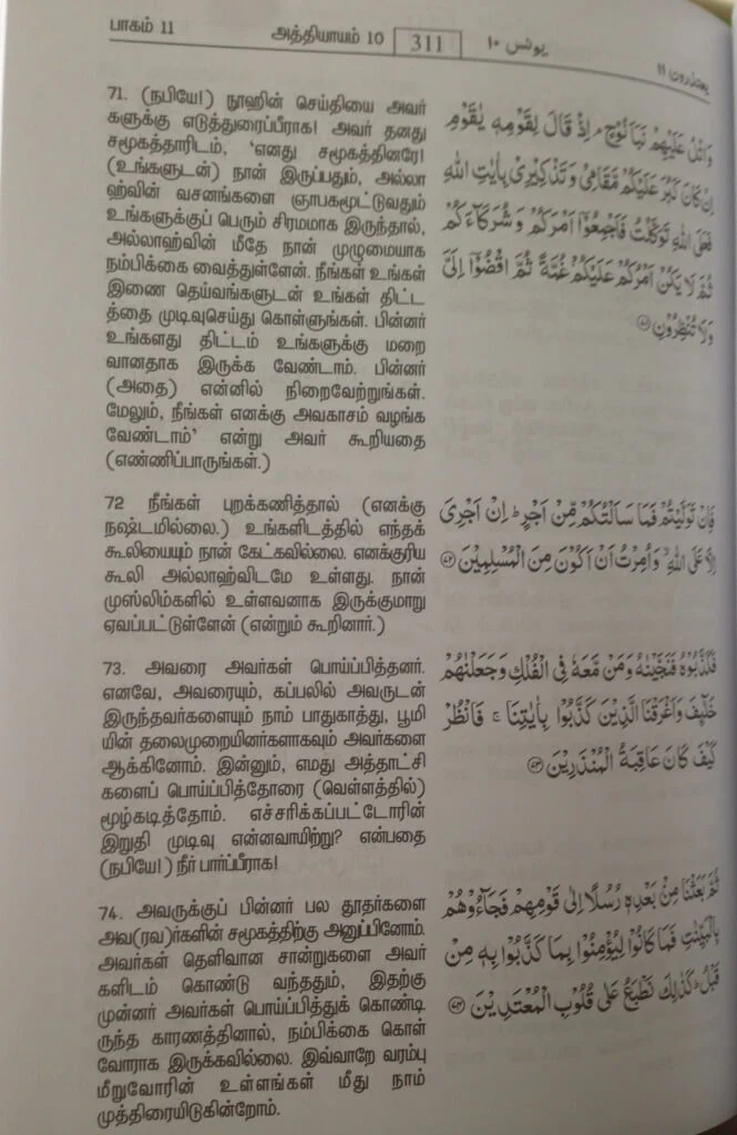 Interpretation of the meanings of the Noble Qur’an with Arabic text in Tamil language.